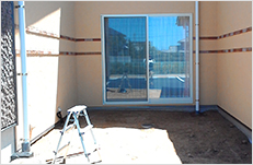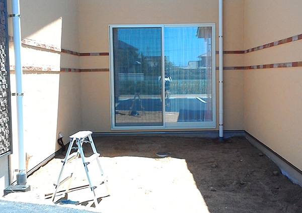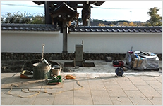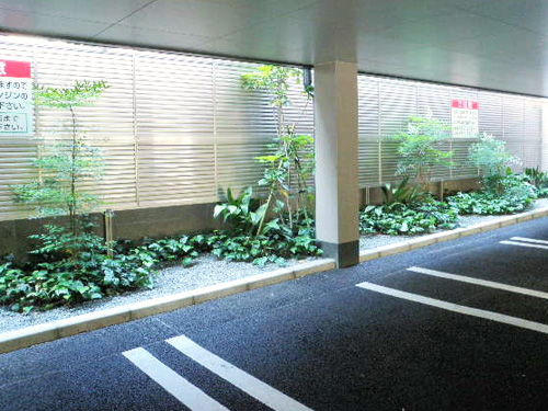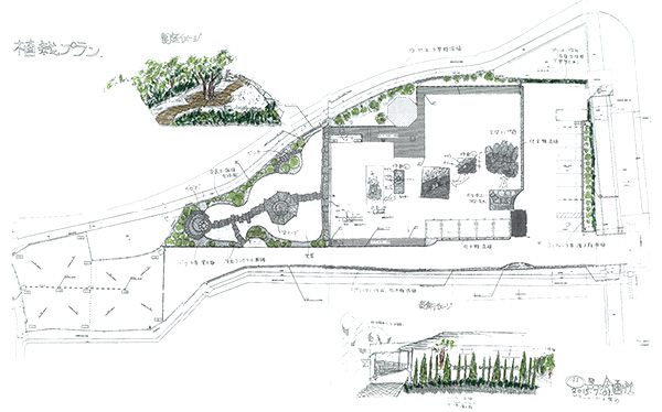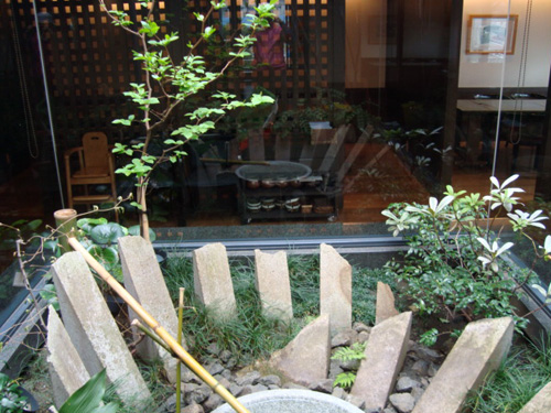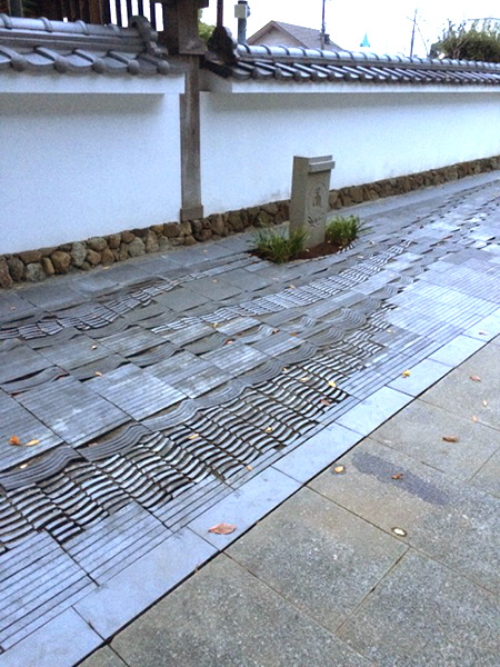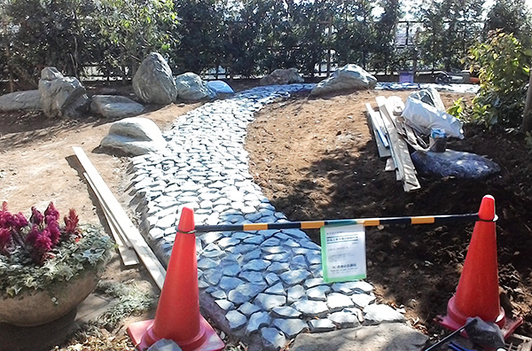 We placed the symbolic stone and Japanese roof tiles geometrically along the fence.